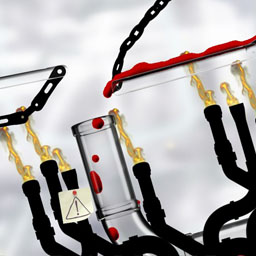 Доп. информация: Действие проходит в какой-то лаборатории (лязгают пробирки, чадят спиртовки). Игрок может наклонять всю лабораторию разом — вправо или влево, а поток жидкости устремляется в соответствующую сторону. В зависимости от ее плотности поток движется с разной скоростью (скажем, апельсиновый сок вязко тянется, а H2O льется невероятно быстро). Действие каждого этапа происходит в какой-нибудь уникальной среде, например, в невесомости или даже в чьем-то пищеварительном тракте. Незабываемые, одним словом, ощущения.